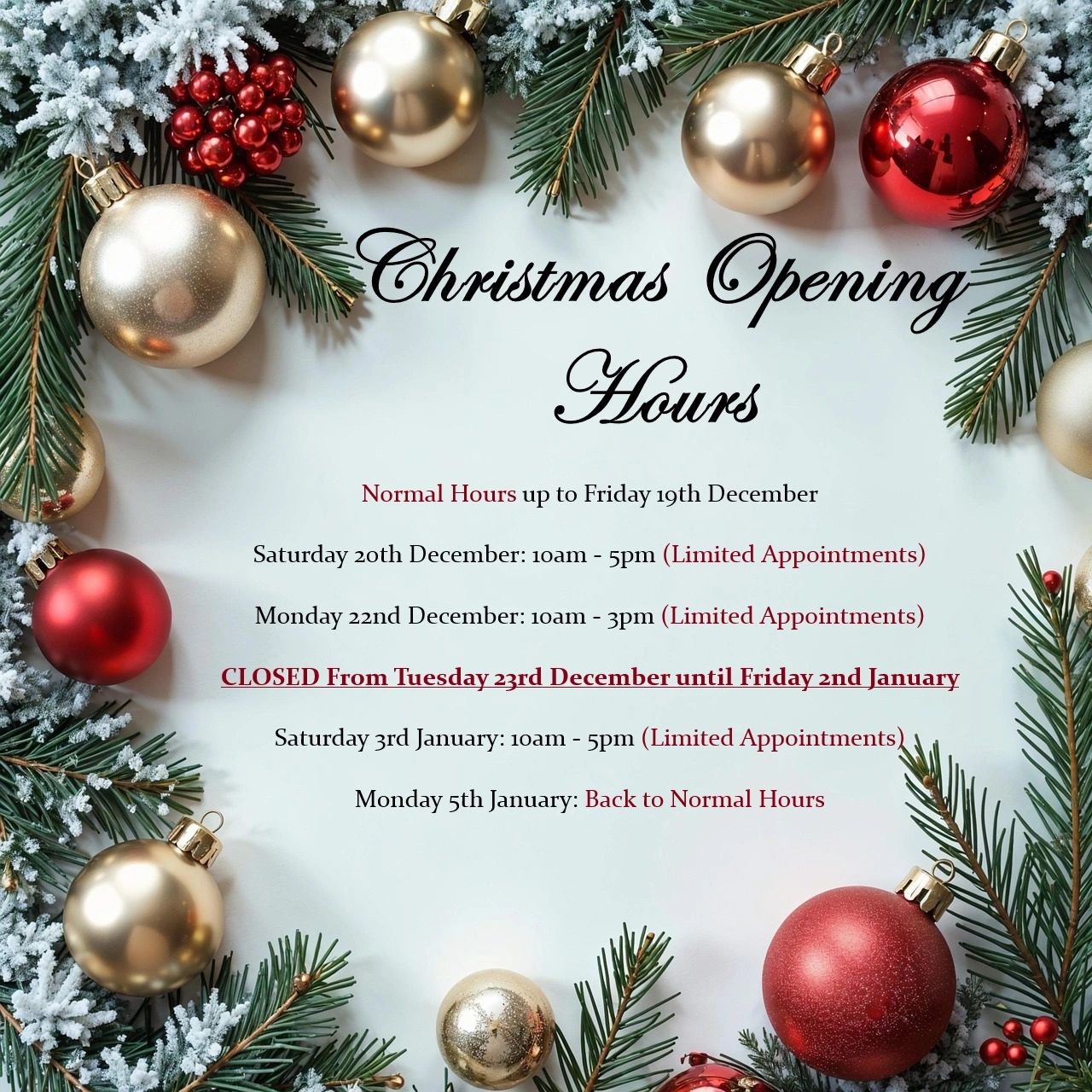 Opening hours are subject to change, please check our Facebook page for any updates