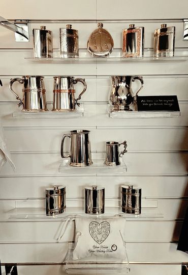 Adding a fabulous pair of shoes can finish off your outfit perfectly, purchase from our men's shoe collection, or why not get the special person in your life a personalised Tankard or Hip Flask from our Sheffield Pewter Collection, or Champagne Flutes for the happy couple.